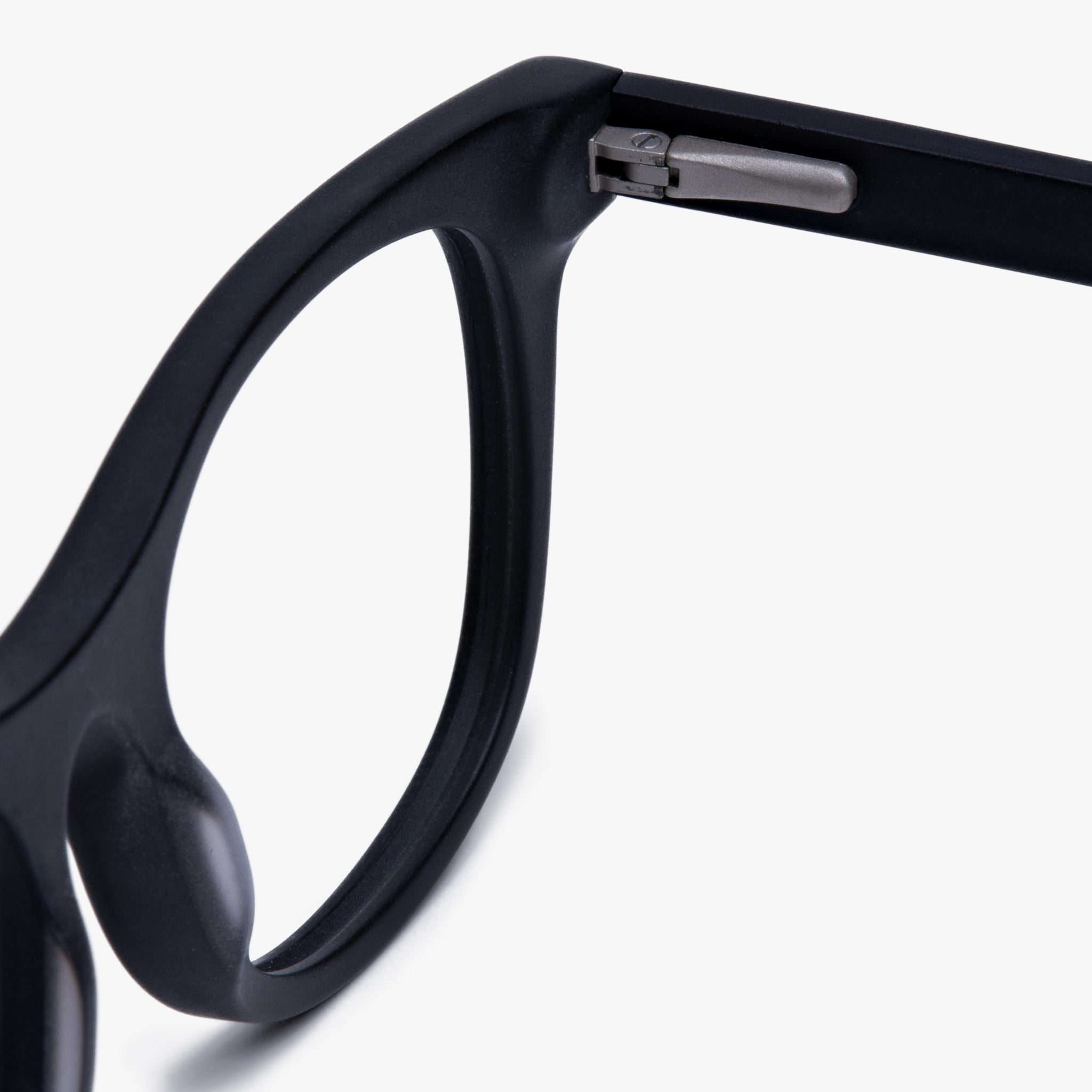 The Malmö blue light glasses feature a unique blend of round and square frames, crafted from high-quality natural acetate with lenses that block 30% of blue light to protect against headaches and eye strain.